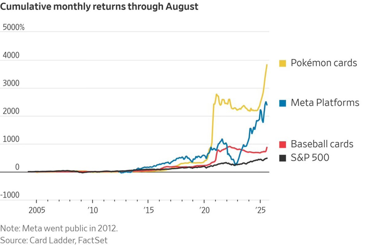 Since 2004, Pokemon cards have generated a 3,821% cumulative monthly return.