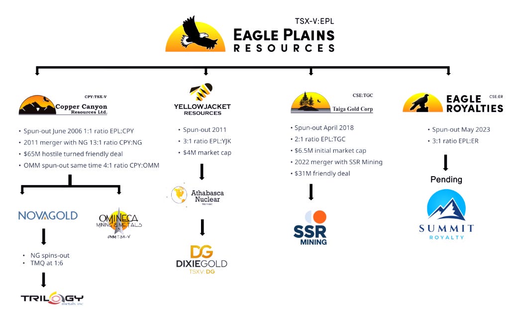 My undisclosed special situation is Eagle Plains Resources. The long-term chart doesn’t reflect the acquisition of its various spinout companies over the years, including the RTO of current portfolio holding Eagle Royalties by Summit Royalty.